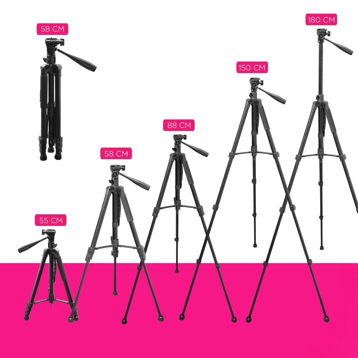 Designed for compatibility with various types of cameras and smartphones, providing high flexibility in use. Can be used as a tripod or monopod, providing additional flexibility for a variety of shooting needs, from studio use to outdoors.