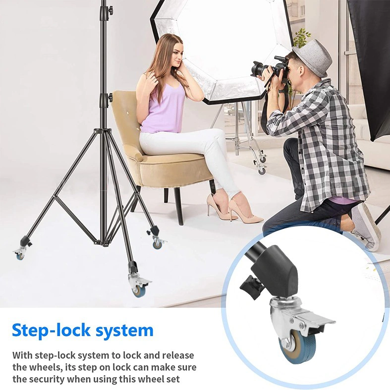 These wheels are suitable for light stands with a diameter of less than 22mm, making them very versatile and can be used with a wide range of studio equipment. These wheels are easy to install and remove, allowing you to quickly add mobility to your studio equipment without any hassle.