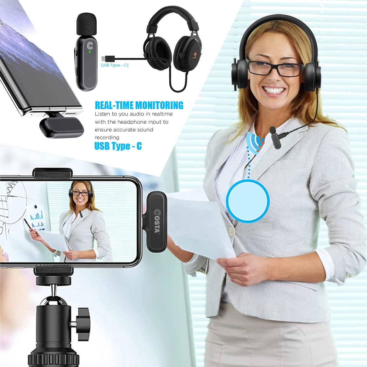 COSTA True Dual (TX) Wireless Mic Super Lavalier Clip On Phone Lightening is a wireless audio solution specifically designed for various video recording and live broadcast purposes. This tool is ideal for content creators such as YouTubers, vloggers, podcasters, interviewers, and TikTok users who need clear and stable sound quality, even at long distances. With a variety of advanced features, this microphone ensures professional recording results and is easy to use.