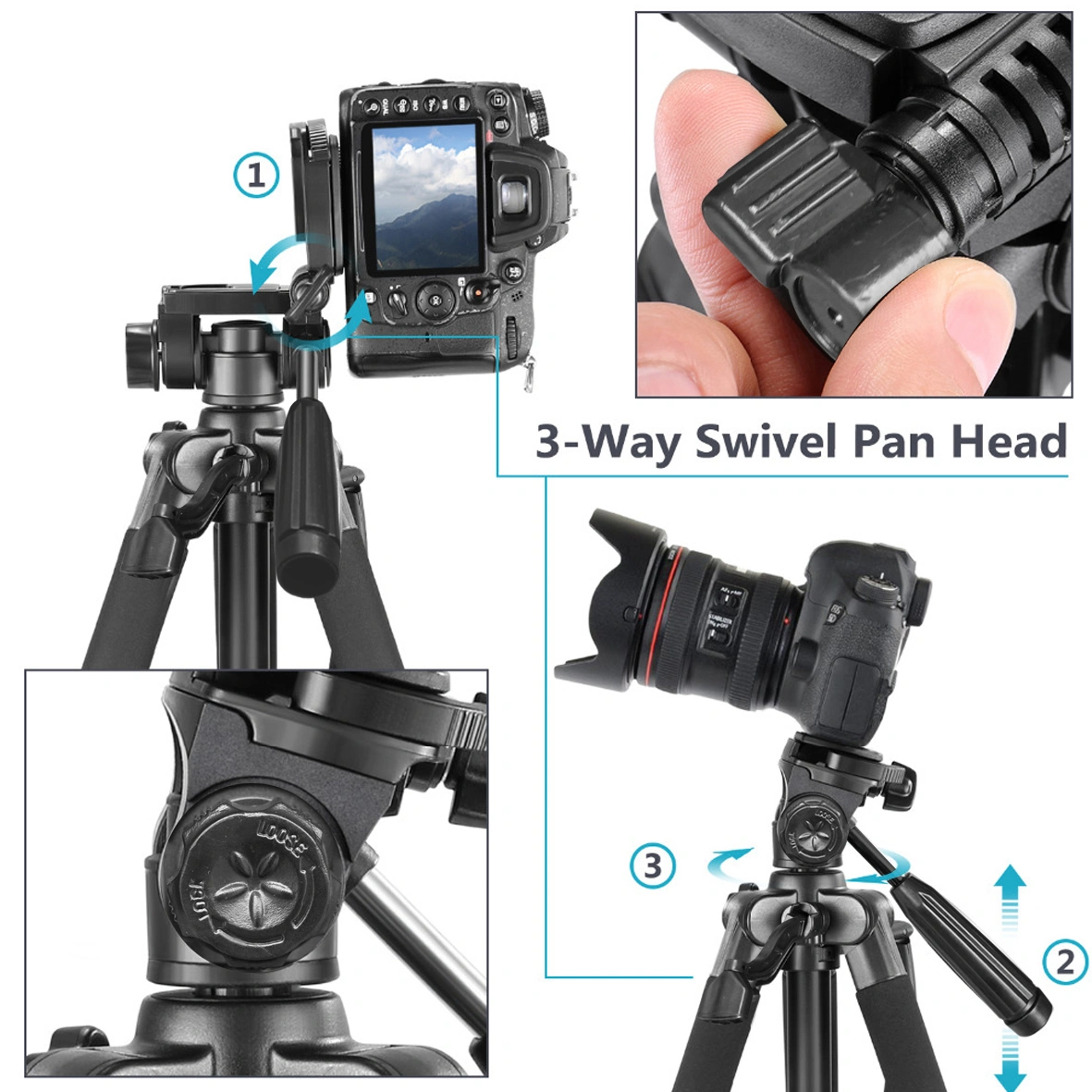 The universal 1/4 inch screw interface ensures compatibility with a wide range of devices, from smartphones to DSLR cameras and camcorders, making the COSTA VT-205 tripod extremely versatile.