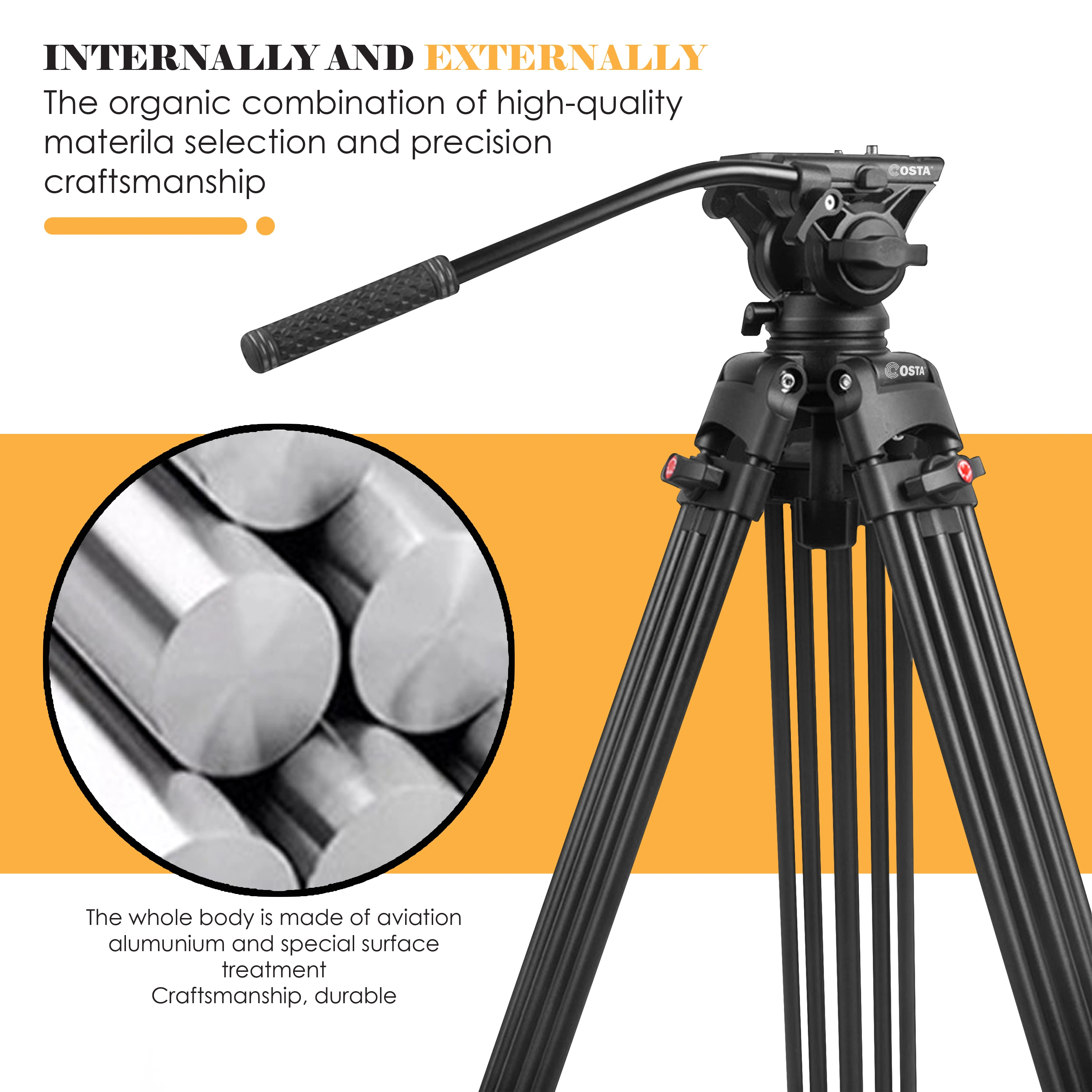 COSTA VT-P1800 Fluid Head Tripod Professional Video Maker Heavy Duty