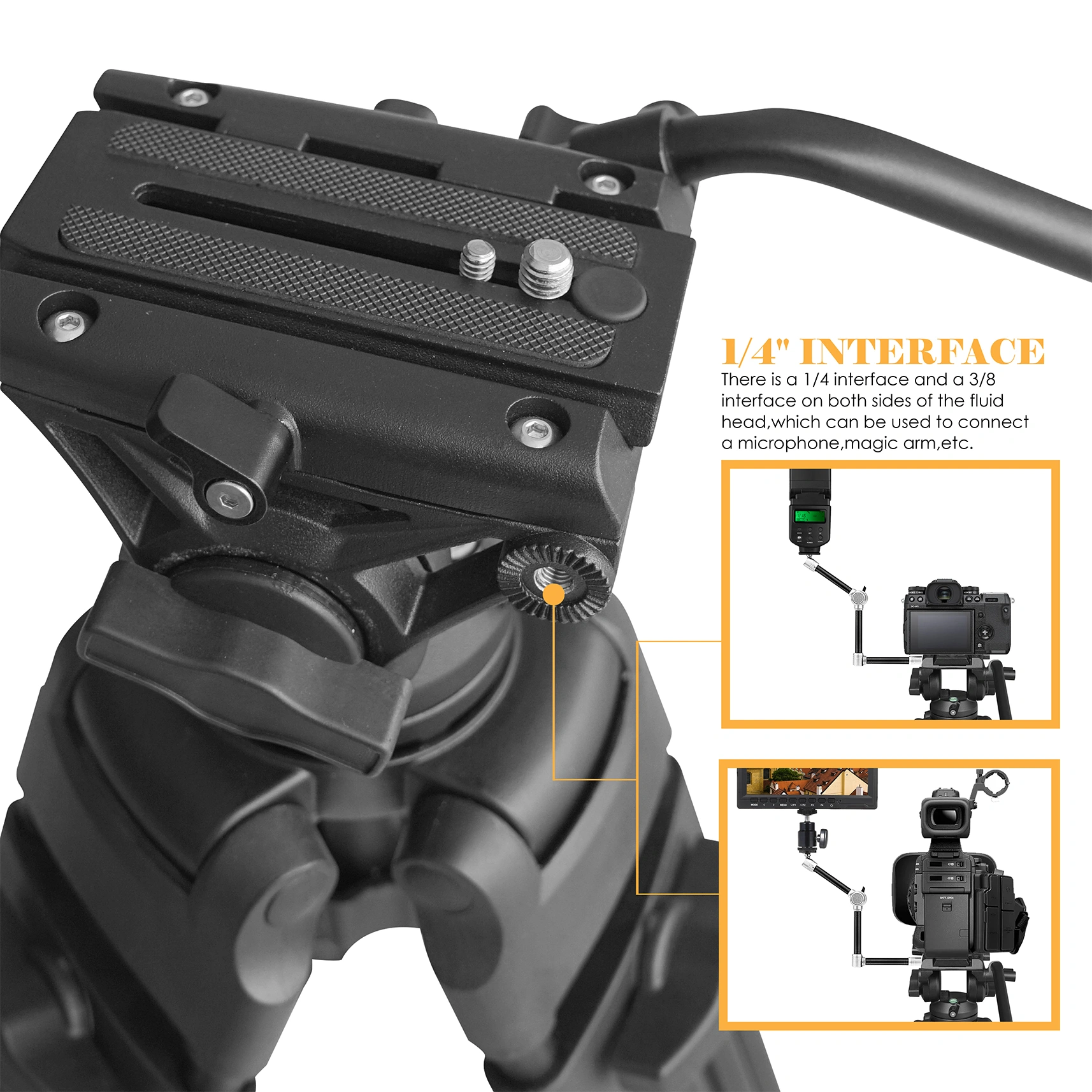 With a maximum height of 1740mm and a fluid head feature that provides smooth, precise movement, this tripod is ideal for shooting situations that require control and smoothness of movement, such as shooting cinematic videos or expansive panoramic photos.