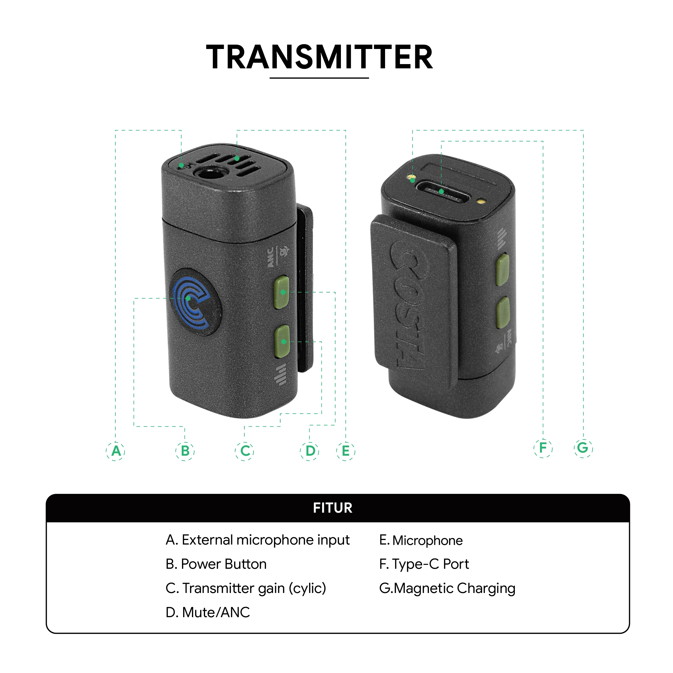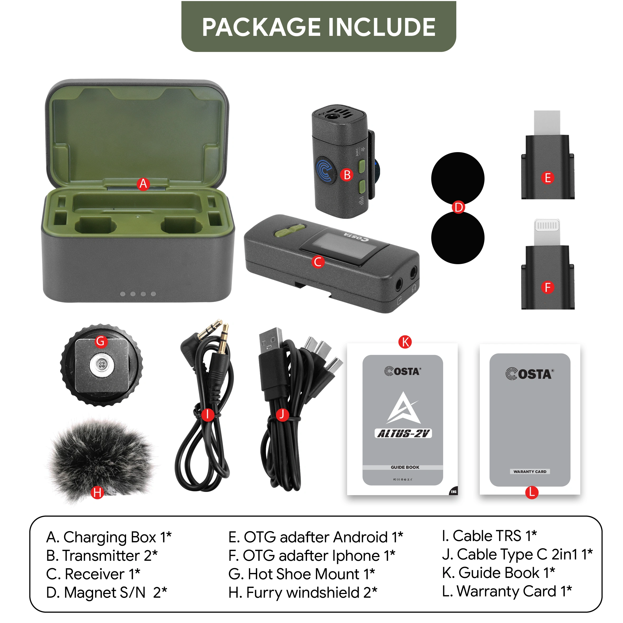 COSTA Altus 2V Dual Person Compact Wireless Microphone Lavalier 2.4GHz for Smartphone, Camera, Handycam, Mixer, Pc, Laptop