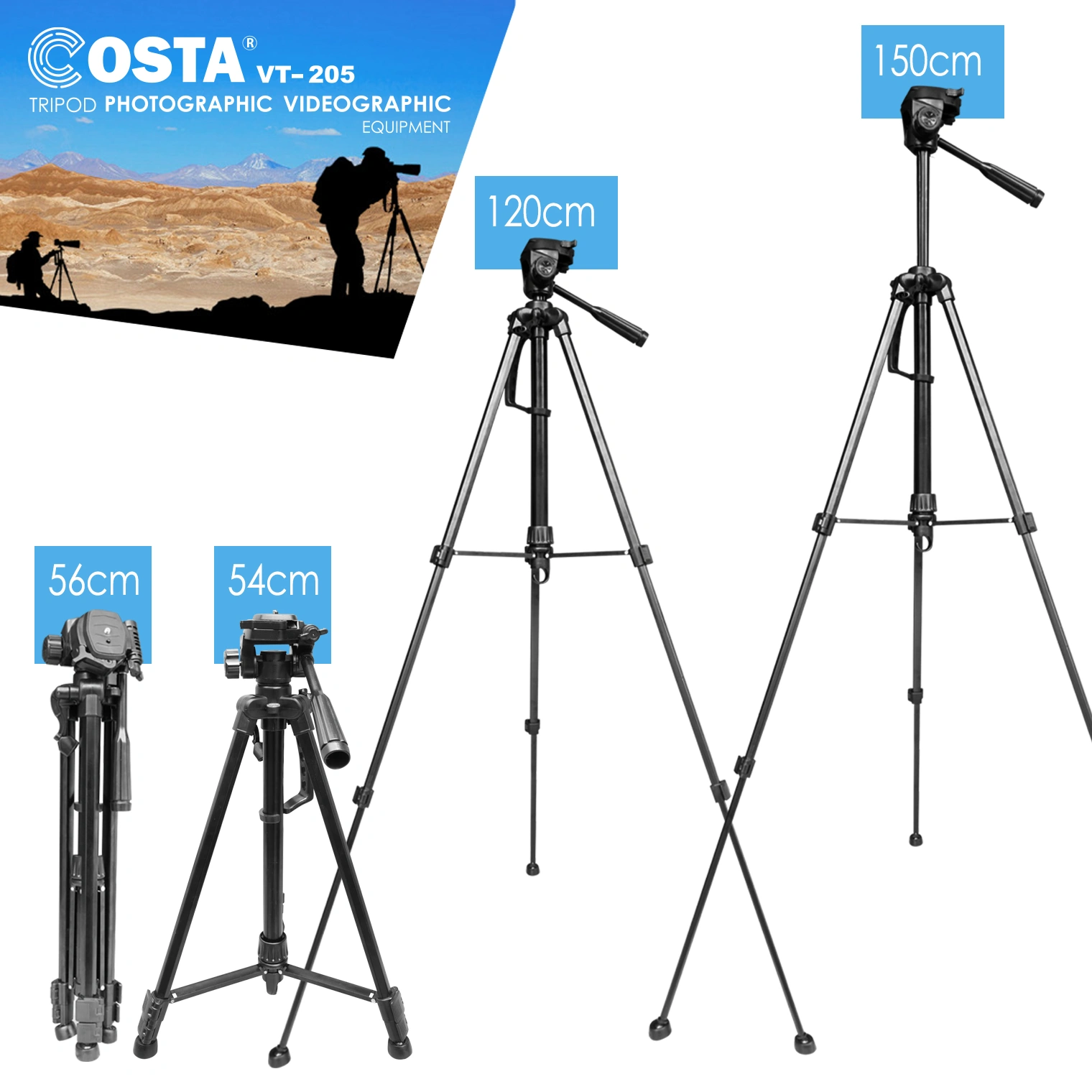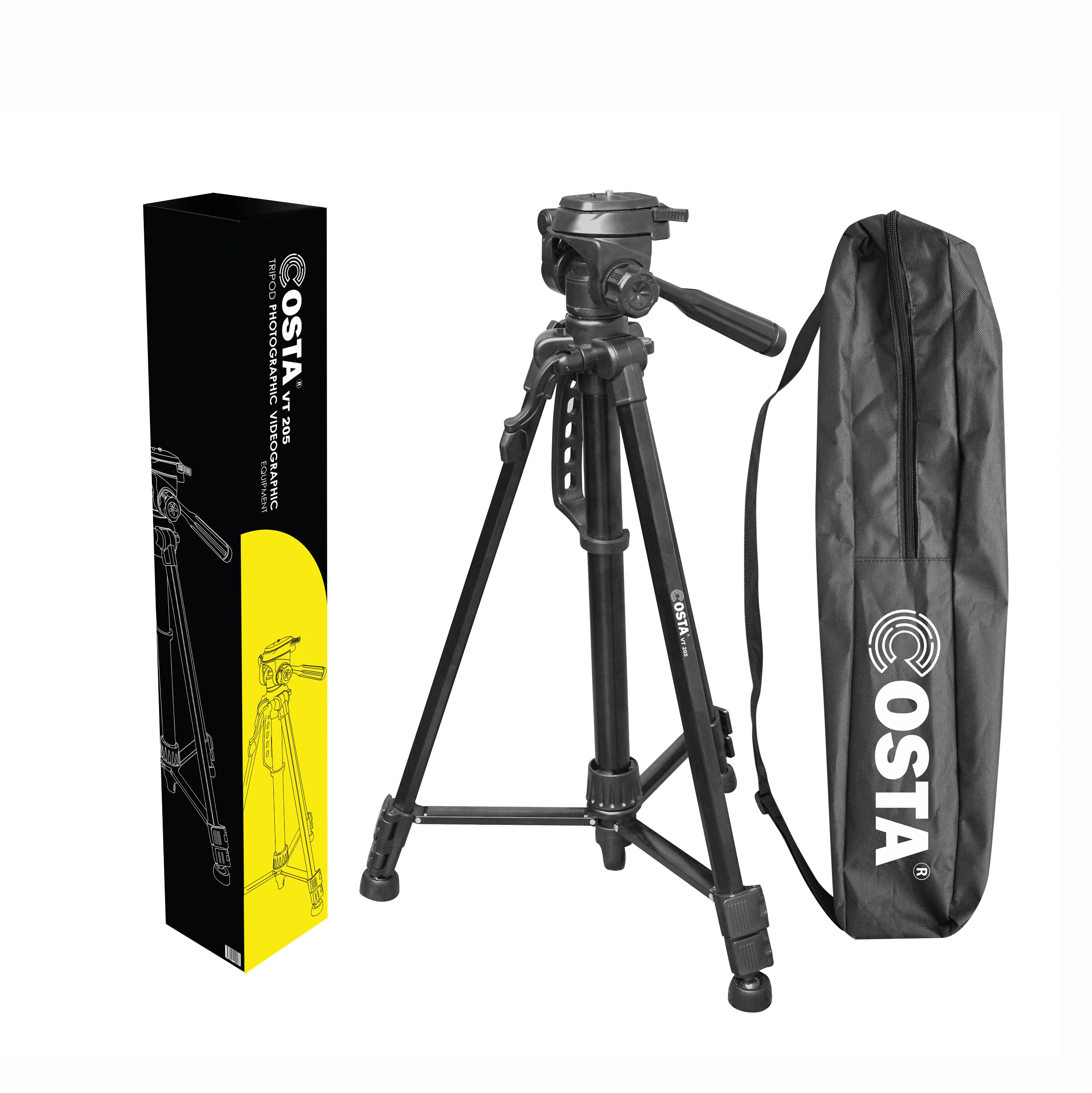 COSTA VT-205 Tripod is a tripod specifically designed for photography and videography, providing the stability and durability needed by users of DSLR, mirrorless, video cams, smartphones and tablets. With its lightweight yet sturdy aluminum material, this tripod offers the perfect balance of strength and portability, making it an ideal choice for photographers and videographers who travel frequently.